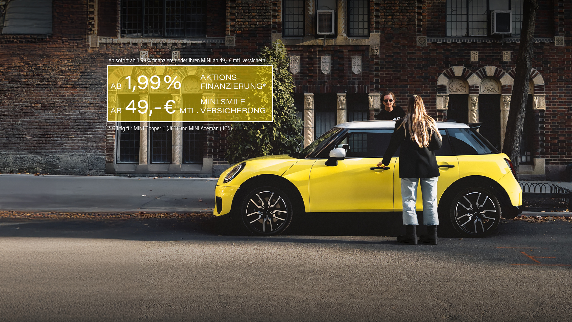 49 EUR mtl. Prämie für MINI Cooper C/E/S/SE, MINI Aceman E/SE und MINI Countryman C/E/SE ALL4, Laufzeiten von 24 bis 36 Monaten.