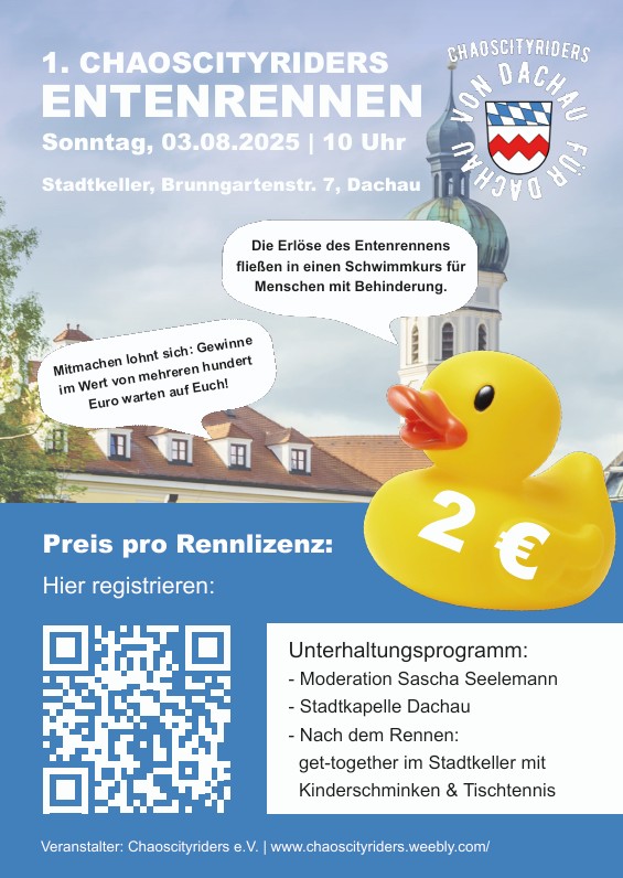 Das Event wird vom gemeinnützigen Verein “Chaoscityriders e.V.” organisiert und verbindet Spaß mit sozialem Engagement. Unsere beiden Enten tragen dabei stolz das Widmann + Winterholler-Gewand und zeigen Flagge für unsere tollen Automarken.